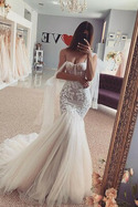 Rochie de mireasa Tul Sirenă Ciubuc Mediu Talie naturale PlajăRochia asta a fost la fel de frumoasă, iar fotografiile arată așa cum ar trebui pe pagina web. M-am îndrăgostit instantaneu de ea imediat ce am îmbrăcat-o.