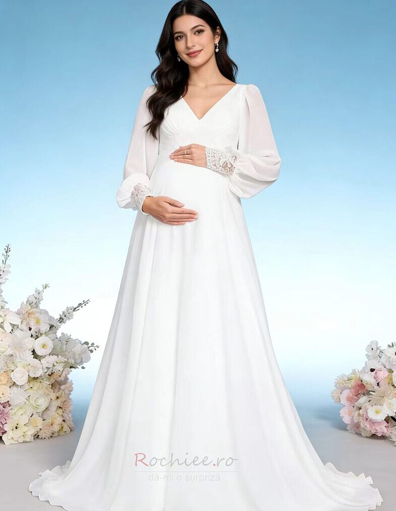 Rochie de mireasa Maternitate V gâtului Talie imperiu Plajă Elegant #R2208609