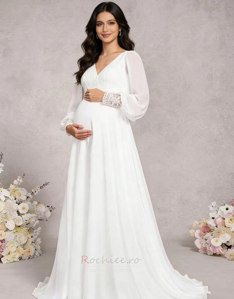 Rochie de mireasa Maternitate V gâtului Talie imperiu Plajă ElegantRochie de mireasa Maternitate V gâtului Talie imperiu Plajă Elegant