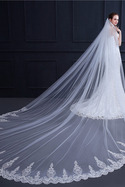 Voal de mireasă cu periuță de păr rafinat din voal din dantelă, din voal lung